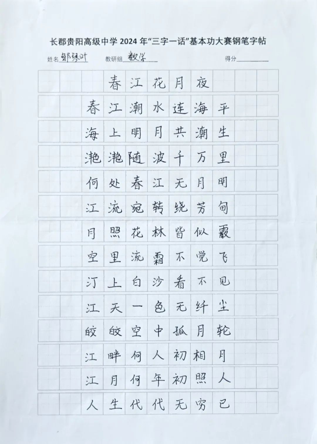 为深入贯彻落实中央、省、市关于新时代教师队伍建设改革实施意见精神、传承和弘扬教育家精神,进一步强化教学技能、夯实基本功、提升教师专业素养,长郡贵阳高级中学于2024年6月举办了2024年教师“三字一话”基本功大赛。