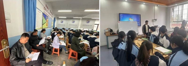 本次调研由校领导牵头,联合中层干部、年级组长、教研组长及学科教师组成专项小组,覆盖高三年级全学科。调研聚焦三大核心:一是查“教学准备”,重点核验教案课件是否契合备考进度、备考资料是否针对学生薄弱点;二是观“课堂实施”,从重难点突破、分层教学运用、课堂互动质量到时间分配,全方位评估课堂效率;三是听“学生心声”,每节课后随机抽取学生进行问卷调查,了解学生对教师教学及作业设计、布置、批改的满意度,收集学生在备考中存在的学习困难、需要老师提供的帮助和给老师的意见和建议等。